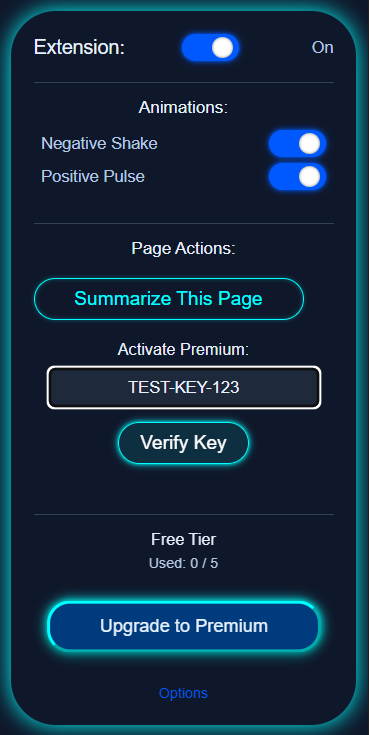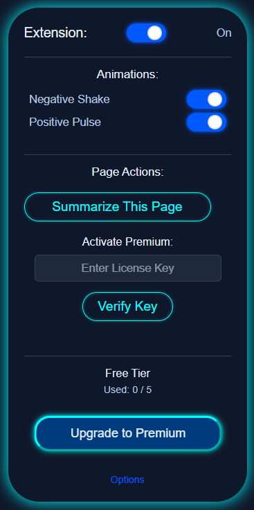 Summarize an entire webpage with a single click from the popup. Analyze any text you've copied by pasting it directly into the popup for analysis.